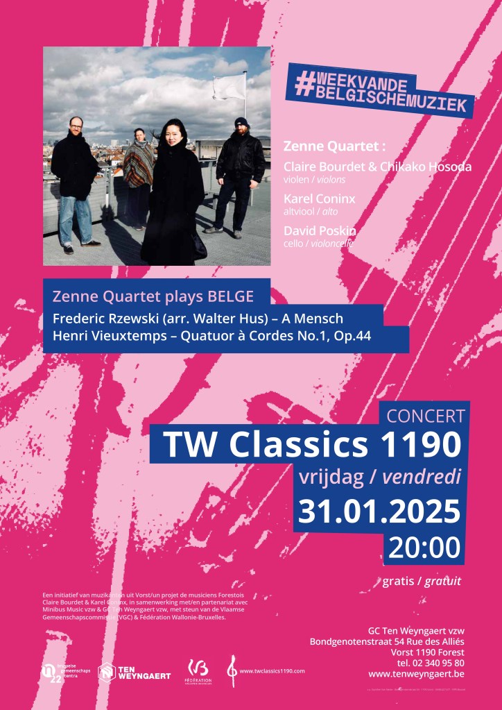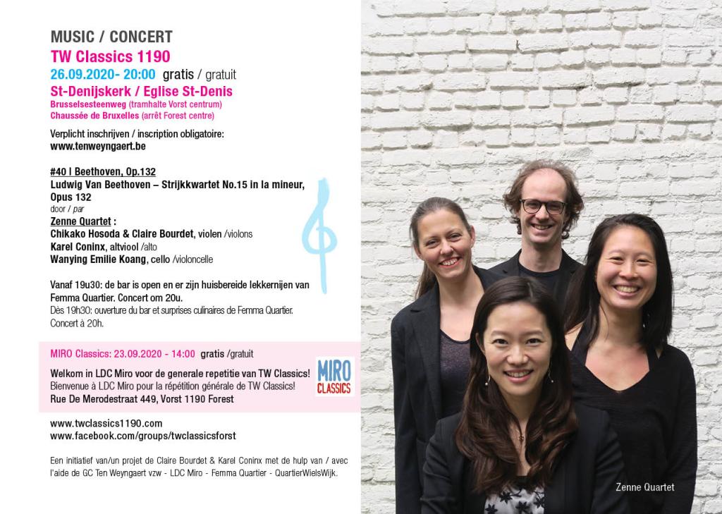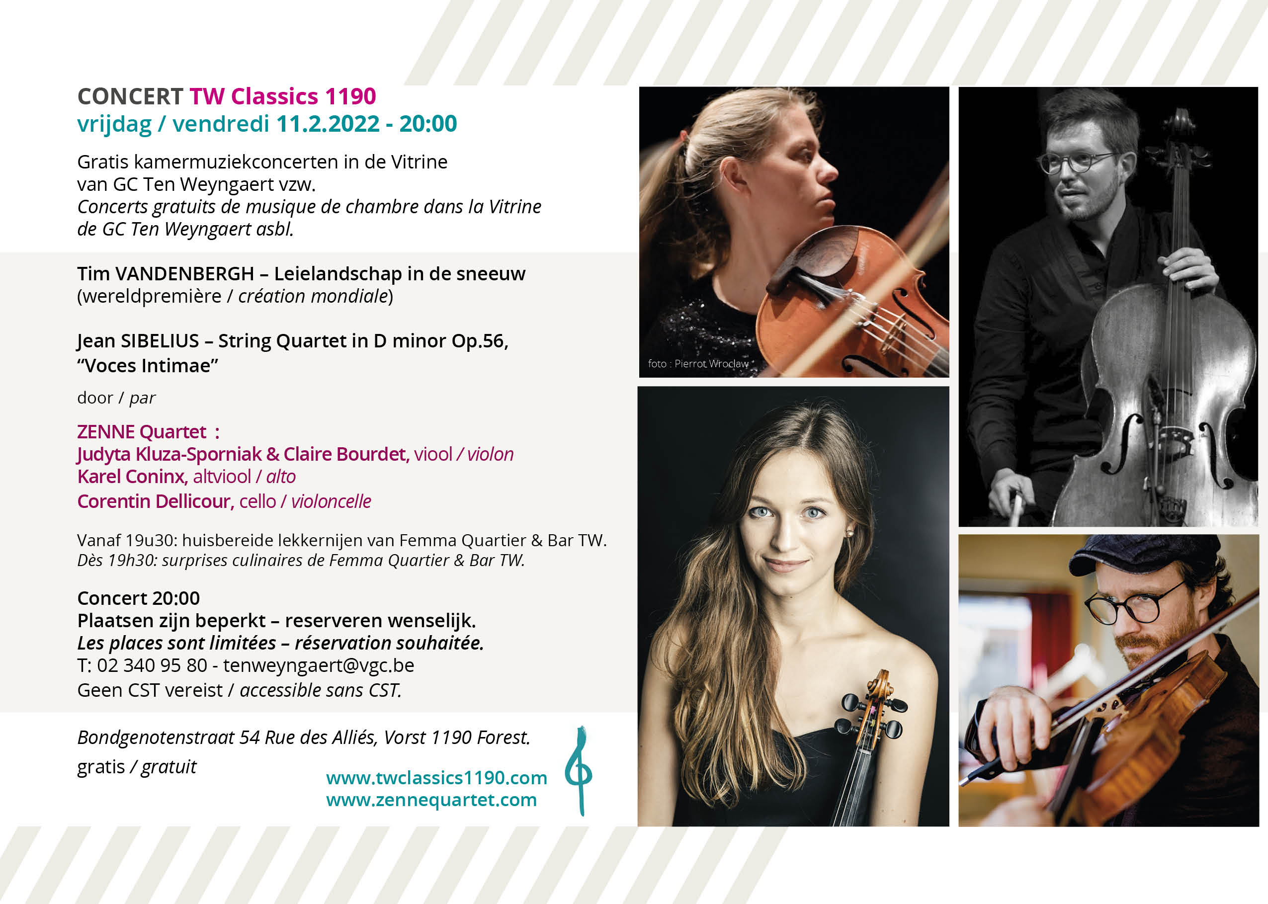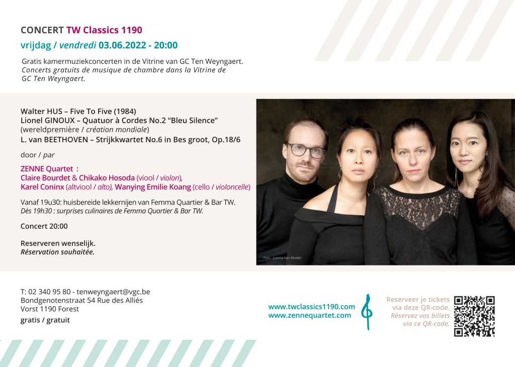 16:00 – Concert Zenne Quartet plays Walter Hus : Strijkkwartet No.7 “Jeunesse”