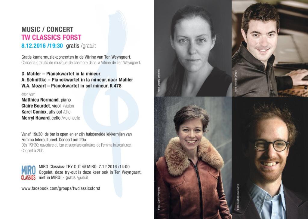 Claire Bourdet, viool /violon Karel Coninx, altviool /alto Merryl Havard, cello /violoncelle Matthieu Normand, piano